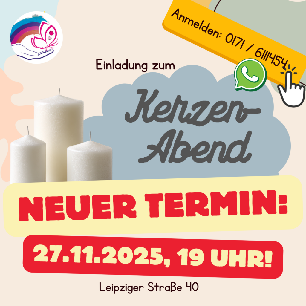 Am 27. November 2025 veranstalten wir in Vorbereitung des Candle-Lighting-Day im Dezember einen gemeinsamen Abend und gestalten die Erinnerungskerzen für unsere lieben Kinder.
