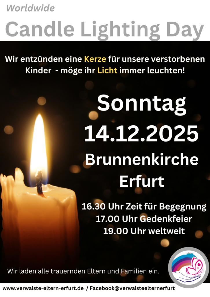 Am 27. November 2025 veranstalten wir in Vorbereitung des Candle-Lighting-Day im Dezember einen gemeinsamen Abend und gestalten die Erinnerungskerzen für unsere lieben Kinder.